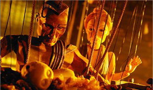 Is ja ein Puppenfilm, allerdings wirklich cool gemacht. Da es Marionetten sind, haben alle Gebäude keine Dächer und sowas wie Torbögen gibt es nicht. Cool wie auch dargestellt wird, wie Leute sterben oder geboren werden (Kinder werden geschnitzt und später lösen sich von der Mutter neue Fäden ab, welche mit der “Puppe” gekoppelt werden). Schaut alles recht nice aus und ergibt alles auch einen Sinn. Es sind halt nicht nur normale Marionetten, sondern die Stricke haben hier einen plausiblen Grund (Lebensadern) und das wurde echt toll umgesetzt. Türen betsehen so z.B. auch nur aus einer schmalen Platte, welche einfach nach oben gezogen wird. Somit ist nach ein paar Schritten Schluss Wink