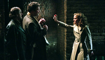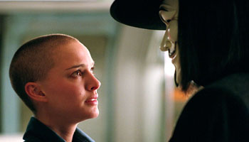 Wie auch immer.. ich war von dem Film begeistert. Er ist auf eine unscheinbare und subtile Art stellenweise witzig, in seinen wenigen Actionsequenzen sehr dramatisch und ist durchweg als stilvoll zu bezeichnen. Keine coolen Sprüche am laufenden Band, nicht andauernd unnötigen Effekte, gute Musik, klasse Bild und vor allem die schauspielerische Leistung der beiden Hauptfiguren, ließen mich gespannt im Kinosessel sitzen. Während die süsse Natalie Portman endlich mal zeigen kann, was für ein gewaltiges Gefühlsspektrum in ihr steckt, musste unser “Rächer” ja vollkommen ohne Gesicht überzeugen. Meiner Meinung nach hätte man das nicht besser machen können. “V” bewegt sich stets elegant, die seiner Wortgewandtheit in nichts nachsteht. Ein intelligenter Charakter, der genau weiss was er will und wie er es bekommt.. ohne wirklichen Hassgedanken verfolgt er sein Ziel.